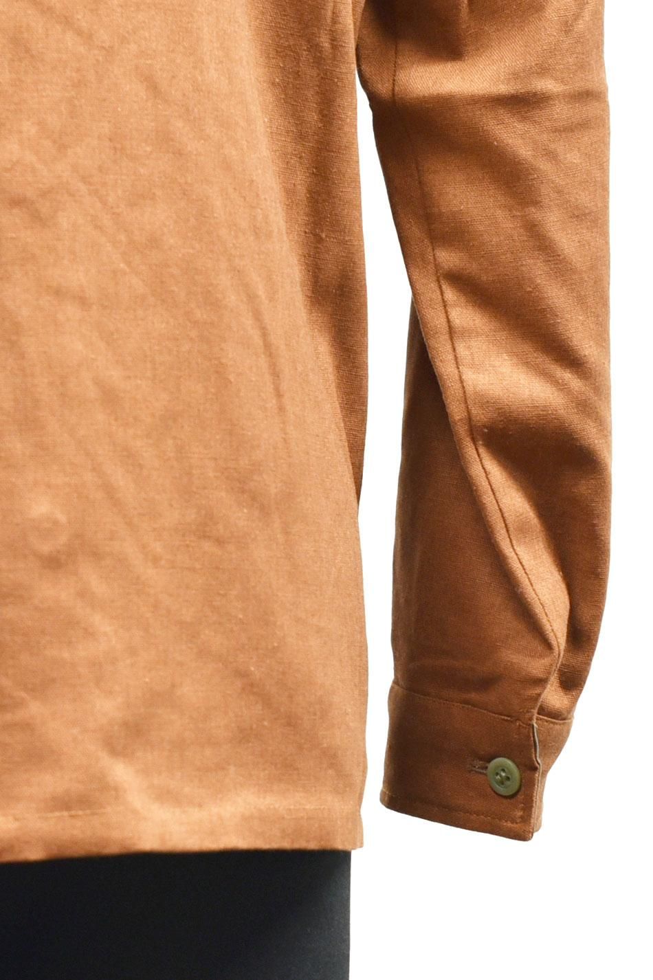 フロントは四つ穴ボタン仕様で、両面ともポケット付き。