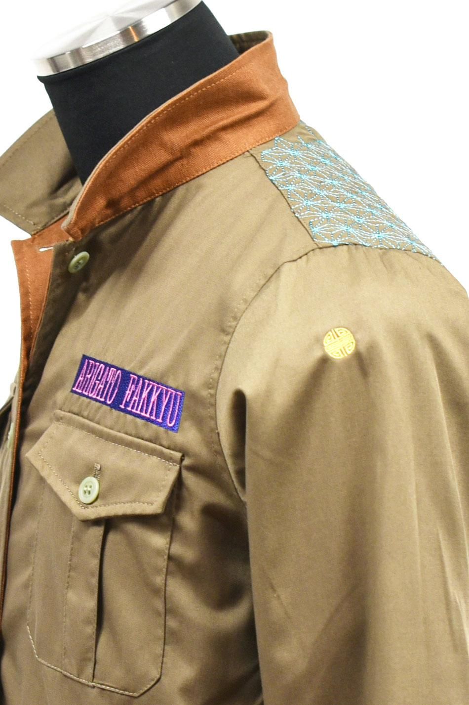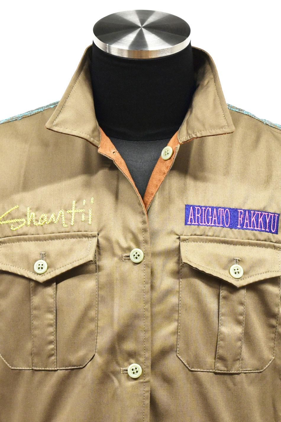 フロントは両胸マチ付きポケット、右胸にはチェーン刺繍で「Shantii」、左胸には「ARIGATO FAKKYU」。