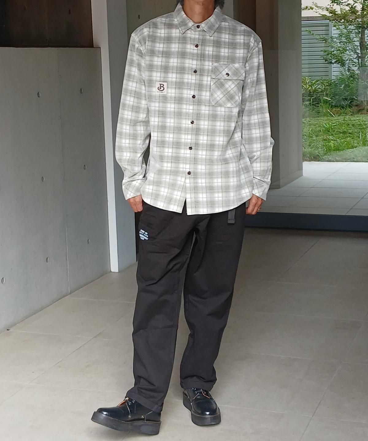 オリジナルの花柄ボタンでシックな雰囲気ながら右胸のブランドタグと右肩のロゴ刺繍がワーク感も、ボトムスはシルエットを選ばず幅広くコーディネートが出来ます。